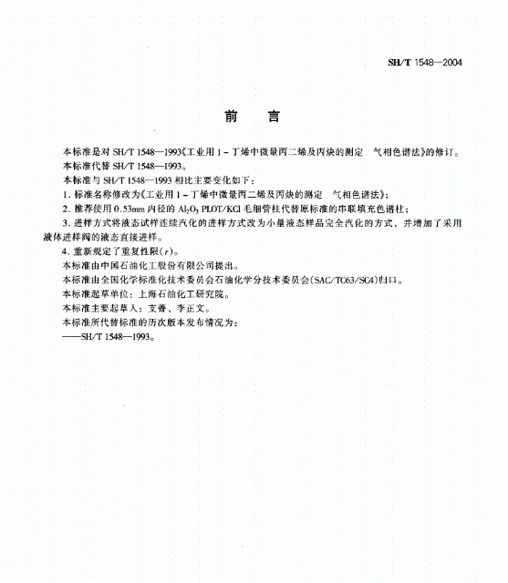 本標準規(guī)定了用氣相色譜法測定工業(yè)用1一丁烯中微量丙二烯及丙炔的含量。